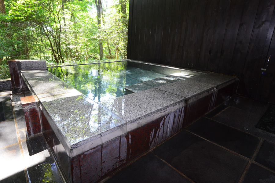 一番広く、のびのび入れるゆったりサイズの御影石露天風呂